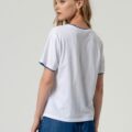 El detalle de vivo ondulado a contraste en el escote y los puños aporta un aire diferente y femenino, elevando una camiseta esencial con un acabado especial.