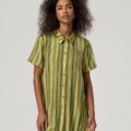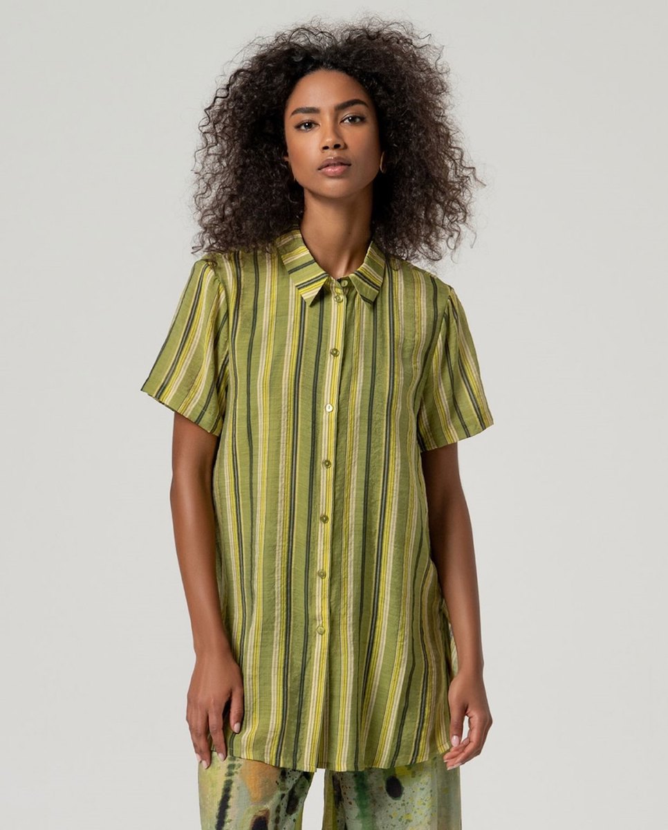 La camisa larga de rayas verticales de Surkana es una prenda fresca y versátil, ideal para los días más cálidos. Su diseño de silueta recta y largo aporta un estilo relajado y favorecedor, mientras que las rayas verticales estilizan visualmente la figura.
