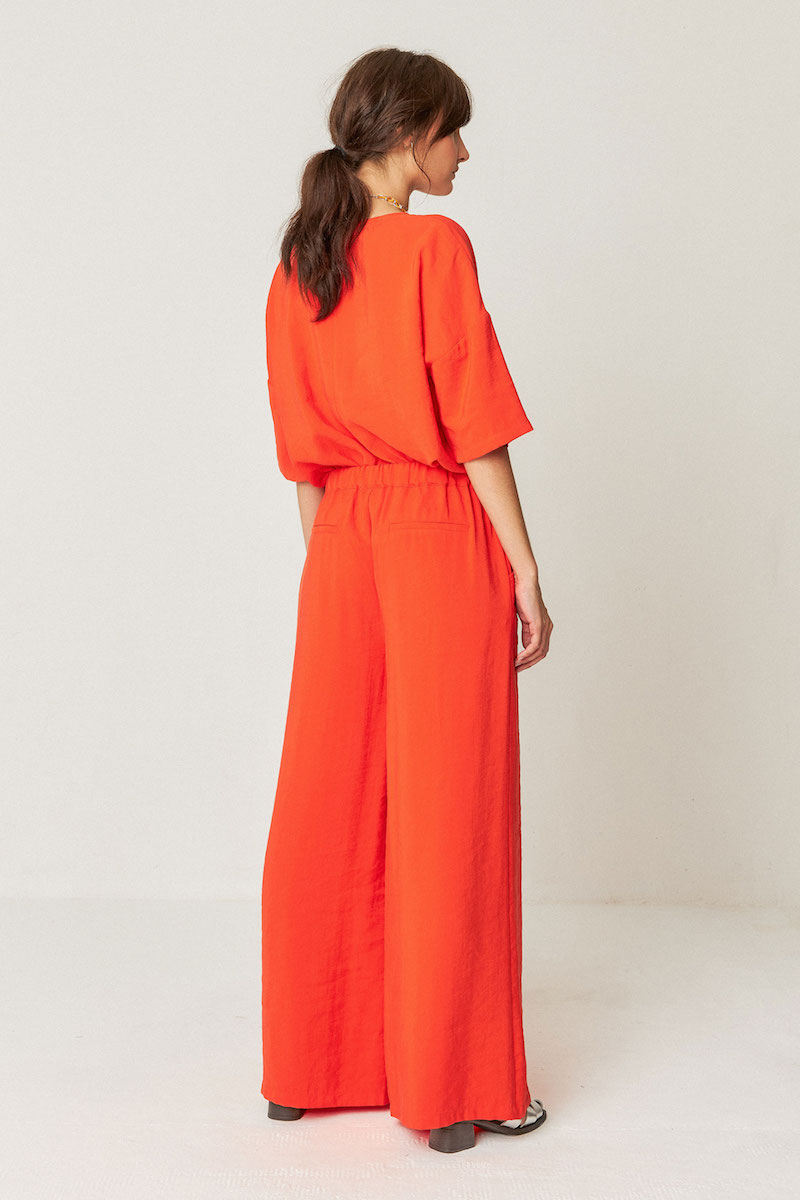 El pantalón Klodin de SKFK es una pieza imprescindible para quienes buscan comodidad sin renunciar a la elegancia. Su corte palazzo aporta fluidez y movimiento, mientras que su cintura elástica en la parte trasera garantiza un ajuste cómodo. Los bolsillos laterales le añaden practicidad, convirtiéndolo en un básico versátil para cualquier armario sostenible.
