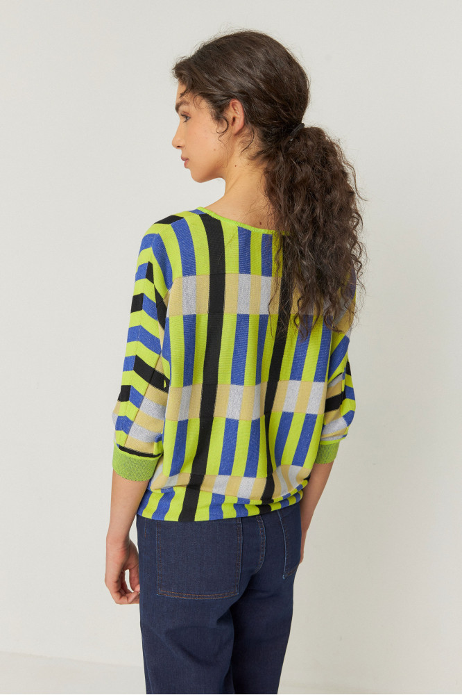 Este jersey es ideal para combinar con pantalones vaqueros ecológicos o faldas de tejido sostenible, creando un look casual y responsable con el medio ambiente.